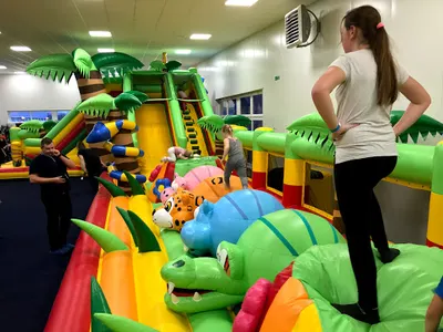 - Bogata oferta atrakcji dla dzieci różnych wieku: dmuchańce, trampoliny, zjeżdżalnie, tor przeszkód